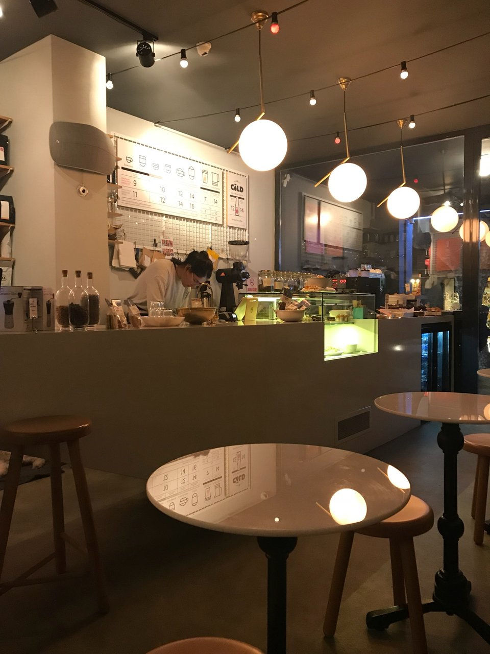 4- Aslında tasarım güzel, fakat ana dolaşım hattı biraz kalabalık genelde. Bu da biraz ayaküstülük hissi yaratıyor. İç mekanda oturacaksanız en dipteki pencerenin önünde sempatik bir masa alanı var. Bir iki basamak yüksekte kalıyor ve mekanın yoğunluğundan biraz koparıyor. Bu masalarda prizler de mevcut.